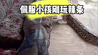 這孩子這么小就敢玩辣條